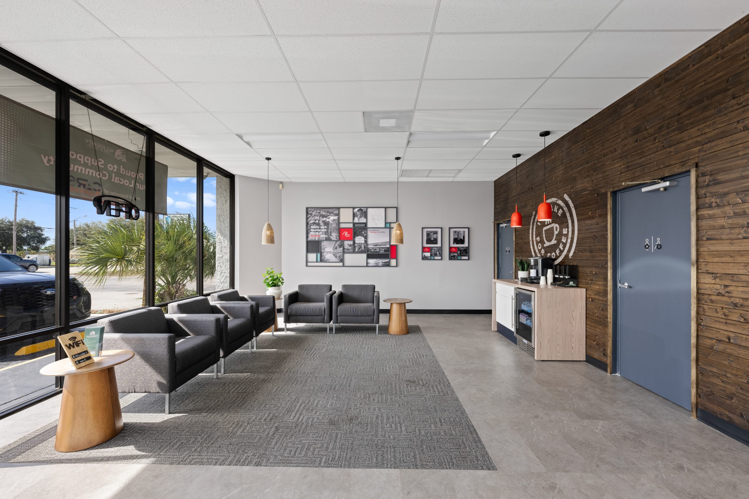 The reimagined space brings a fresh, open layout that enhances both comfort and convenience for customers. Features include comfortable seating, accessible charging stations, bright and inviting finishes, and an updated welcome lounge. The addition of a bold new brand wall serves as a visual centerpiece, highlighting All County’s brand promise of “Quality work. Genuine Care. For all of life’s miles.” and giving customers a clearer sense of the people and purpose behind the brand.